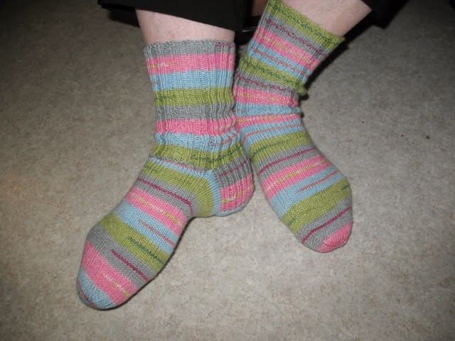 Sain eilen yhdet sukat taas valmiksi. Kutominen tuntui pitkästä aikaa taas mukavalta. Yhtenä syynä voi olla se, että stressaaminen kakkujen tekemisestä on nyt ohi. Pakko myöntää, että tuo kakkuruljanssi otti koville. Omapa oli syyni, kun tein ne urakkaluontoisesti, vaikka olisi ollut aikaa tehdä rauhallisempaankin tahtiin.
